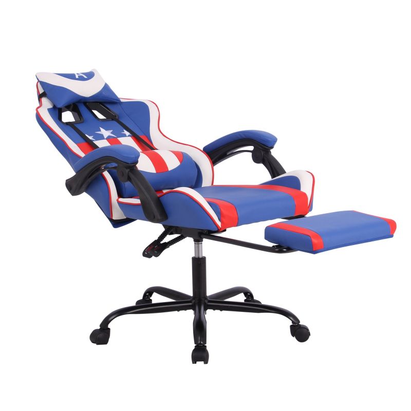 Геймърски стол RFG Max Game, екокожа, Multi-function механизъм, метална основа, до 150 kg, син и бял
