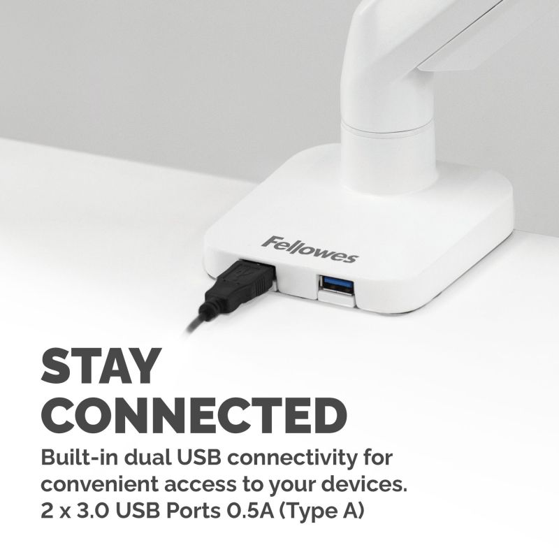 Стойка за монитор Fellowes, с едно рамо, максимално тегло 8 kg, 32'', бяла