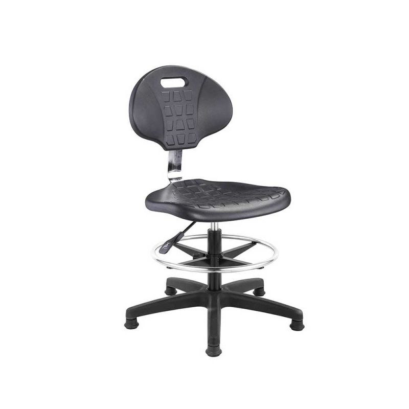 Лабораторен работен стол RFG Nero Ring, висок, полиуретан, до 130 kg, черен, 2 броя в комплект