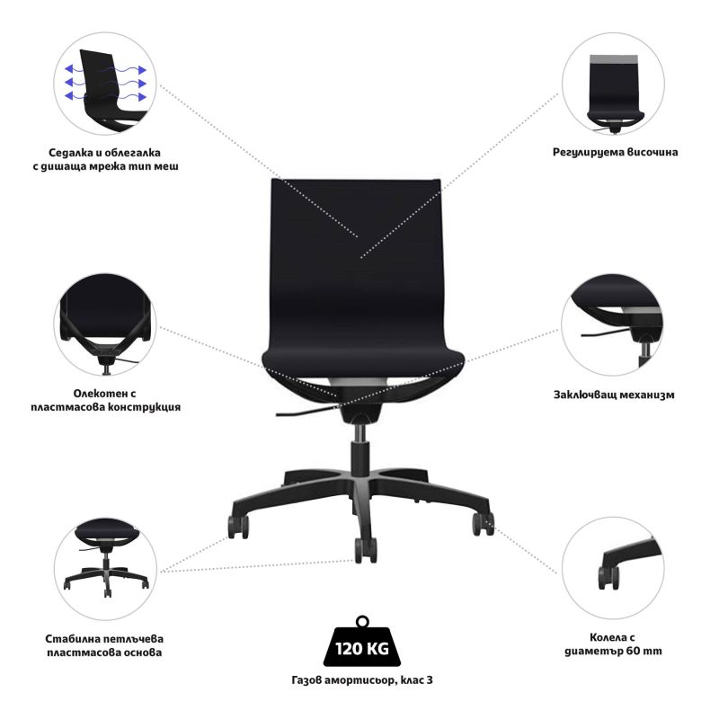 Ергономичен стол Rim Zero ZG 1351 Black, меш, пластмасова основа, черен