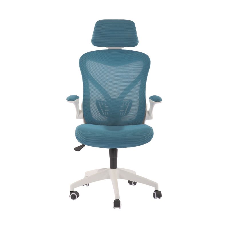 Директорски стол RFG Jolly White HB, дамаска и меш, Tilt механизъм, полипропиленова основа, до 120 kg, синьо-зелен