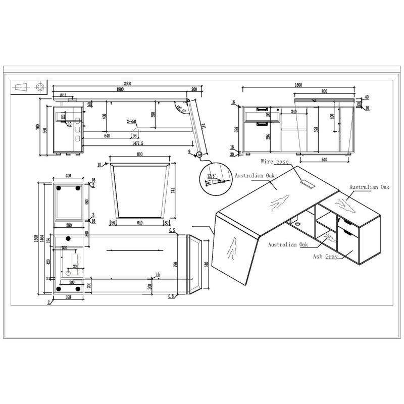 Бюро RFG Elmaz, с шкаф, 2000 х 1500 х 760 mm, ПДЧ 40 mm, дъб и сиво