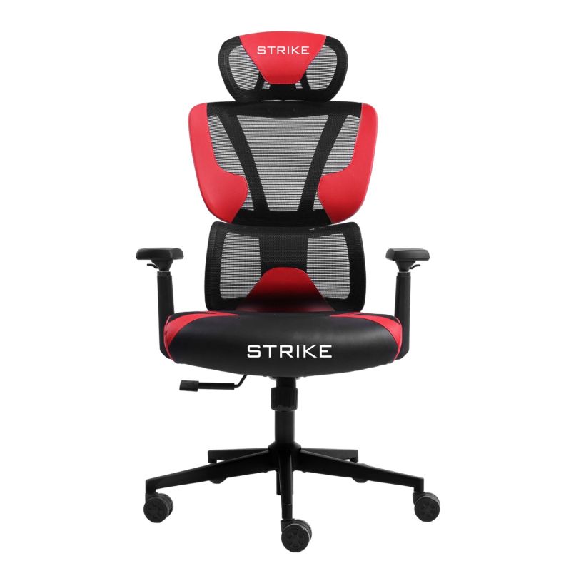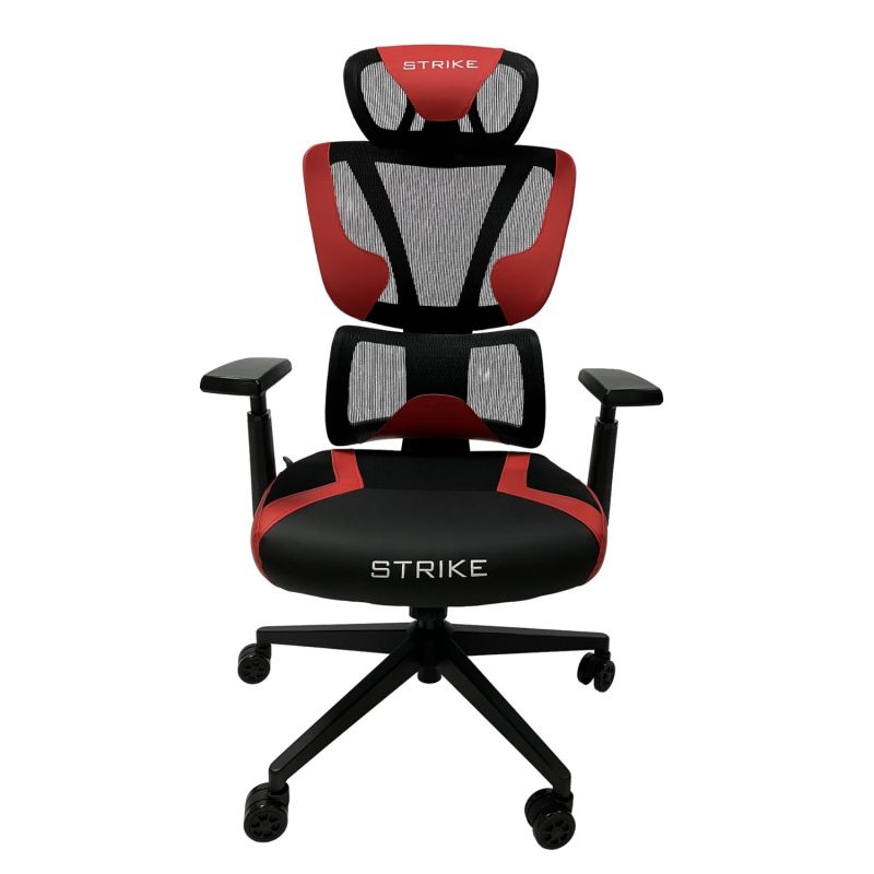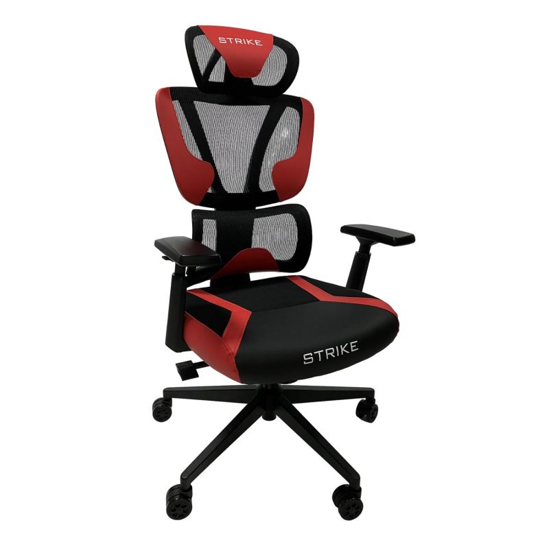 Геймърски стол RFG Strike, дамаска и меш, Multi-function механизъм, метална основа, до 130 kg, черно-червен