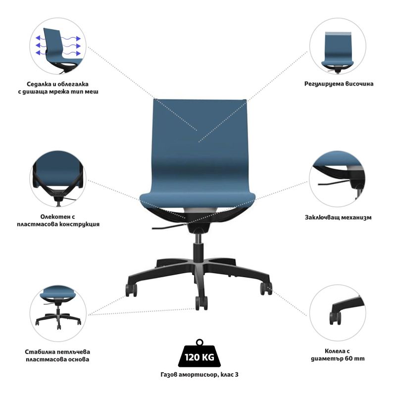 Ергономичен стол Rim Zero ZG 1351 White, пластмасова основа, меш, син