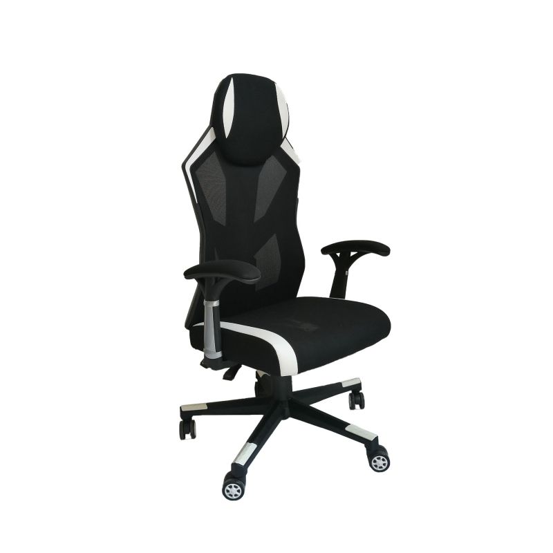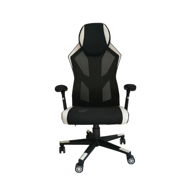 Геймърски стол RFG Soft Game, дамаска и меш, полиамидна основа, до 130 kg, черно-бял