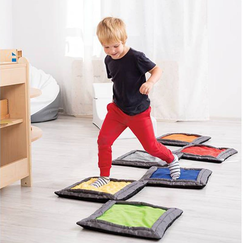 Сензорната пътека е изградена от квадратни панели, всяка пълна с пластмасови топки. Различните елементи са отлично средство за стимулиране и развитие на усещането за допир.