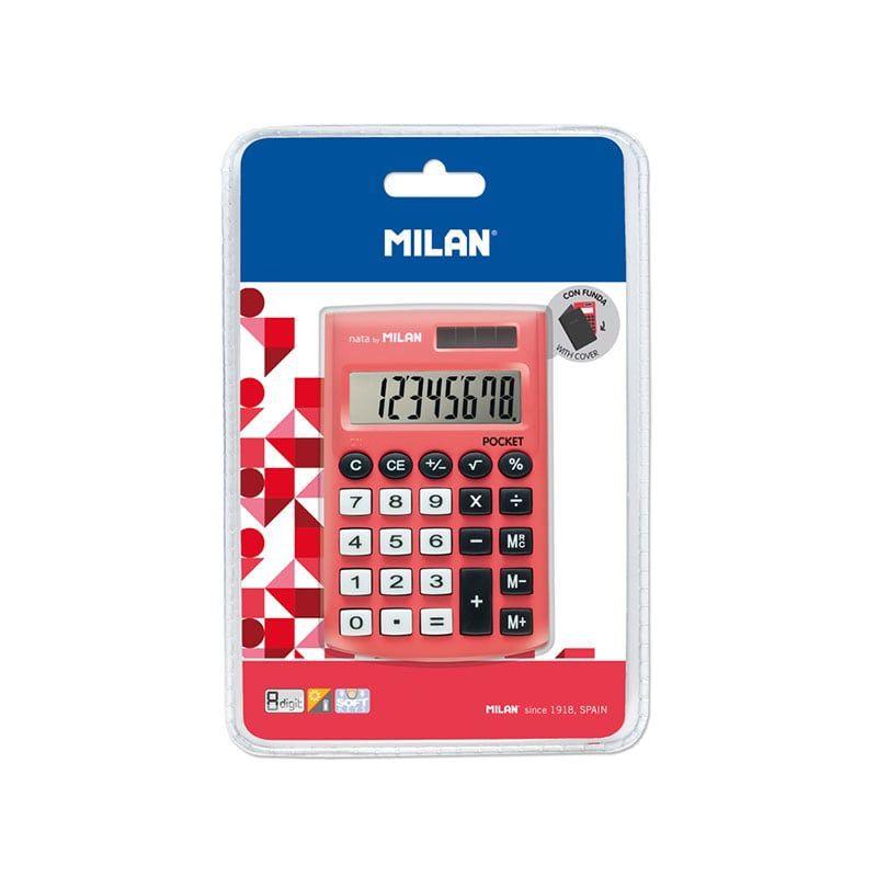 Milan Калкулатор Pocket, 8-разряден, в блистер, червен