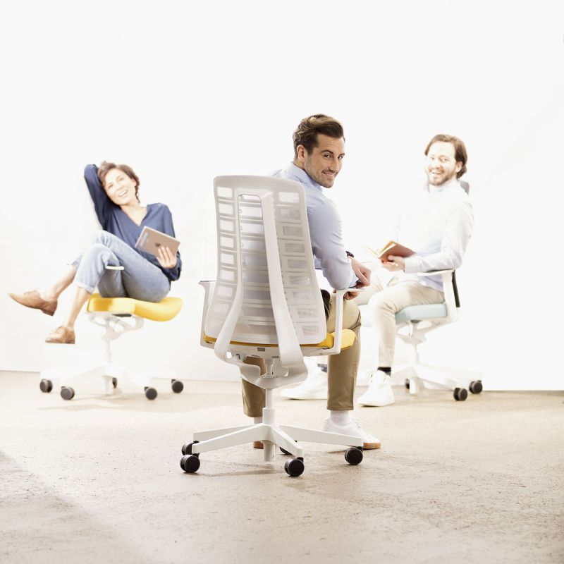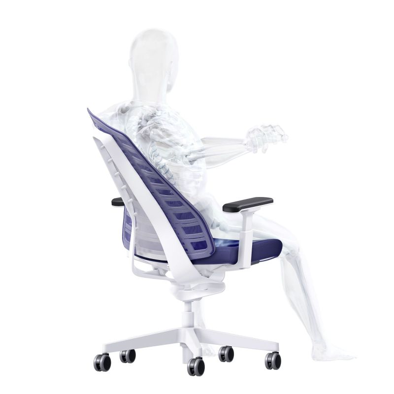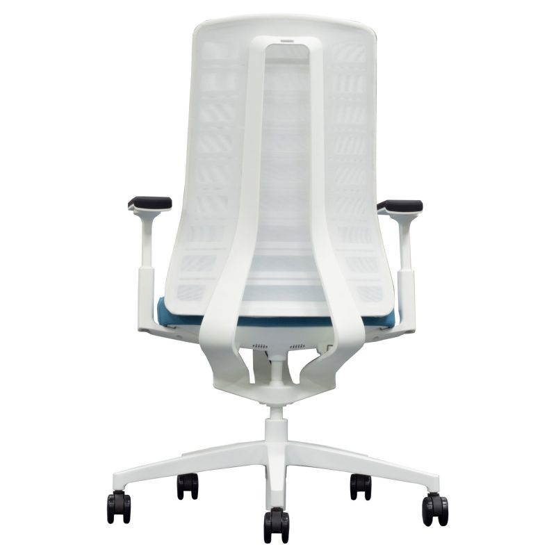 Eргономичен стол Interstuhl Pure PU213, дамаска и меш, Smart-Spring механизъм, до 120 kg, бял/син пастел