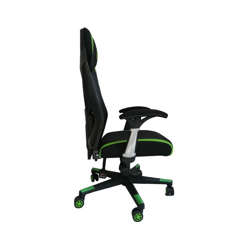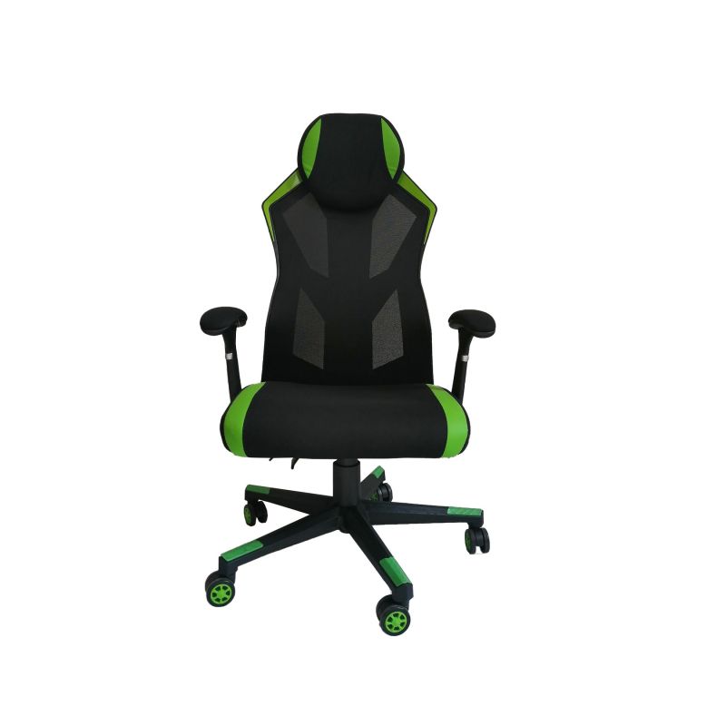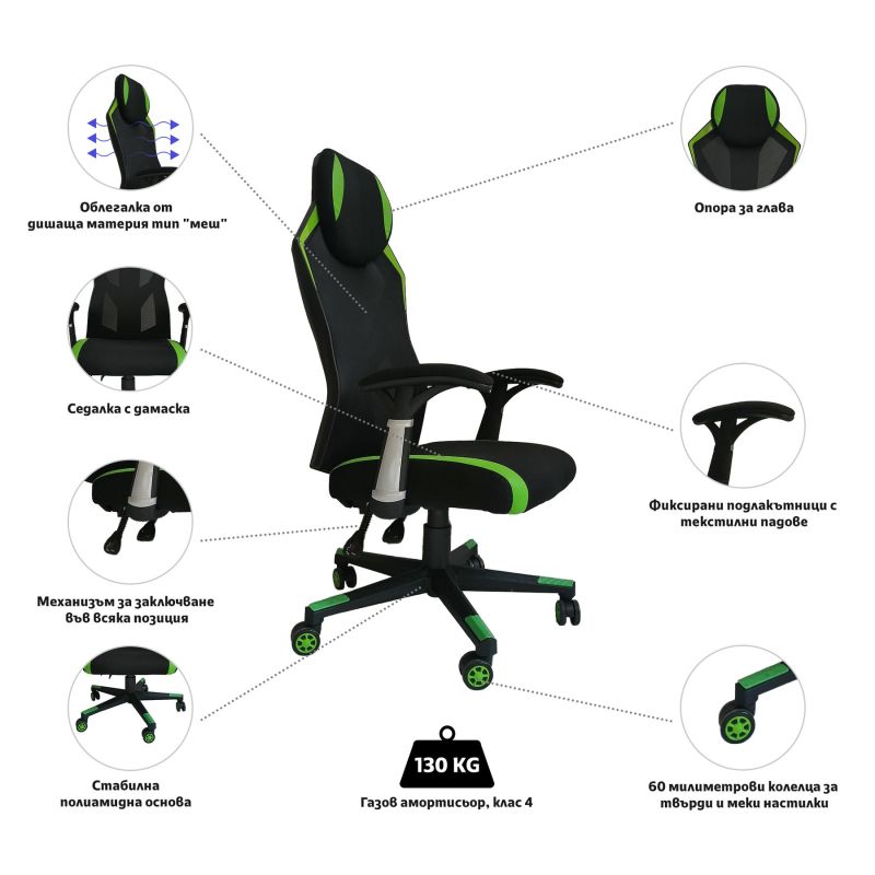 Геймърски стол RFG Soft Game, дамаска и меш, полиамидна основа, до 130 kg, черно-зелен