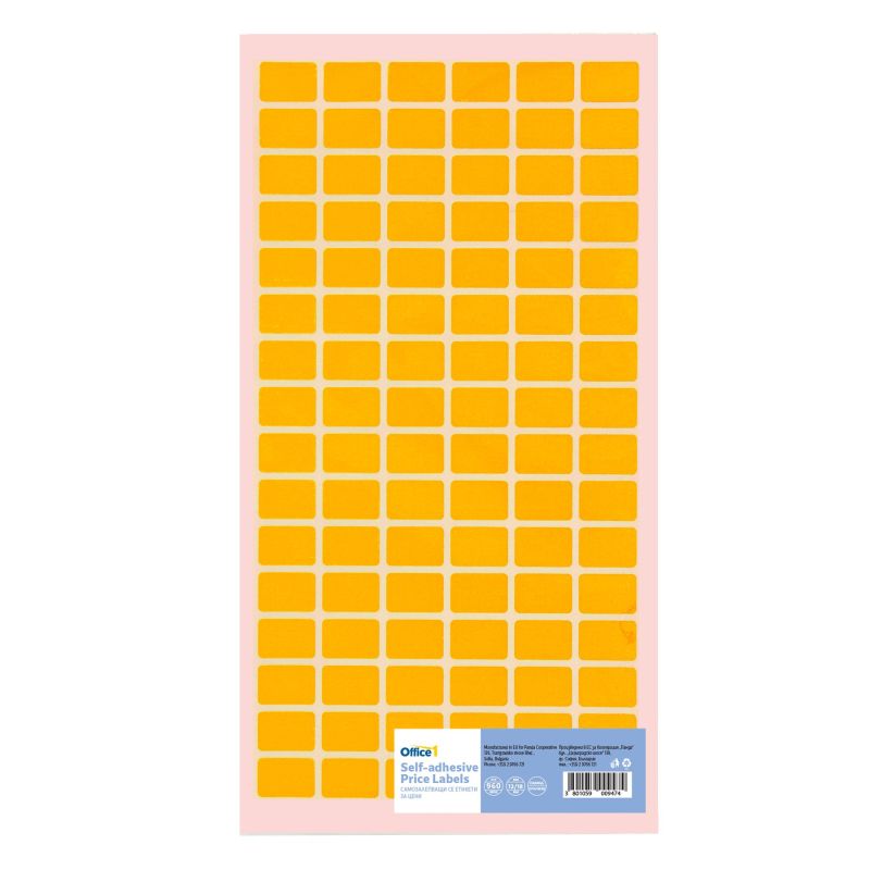 Office 1 Самозалепващи се етикети за цени, 12 x 18 mm, оранжеви, 960 броя