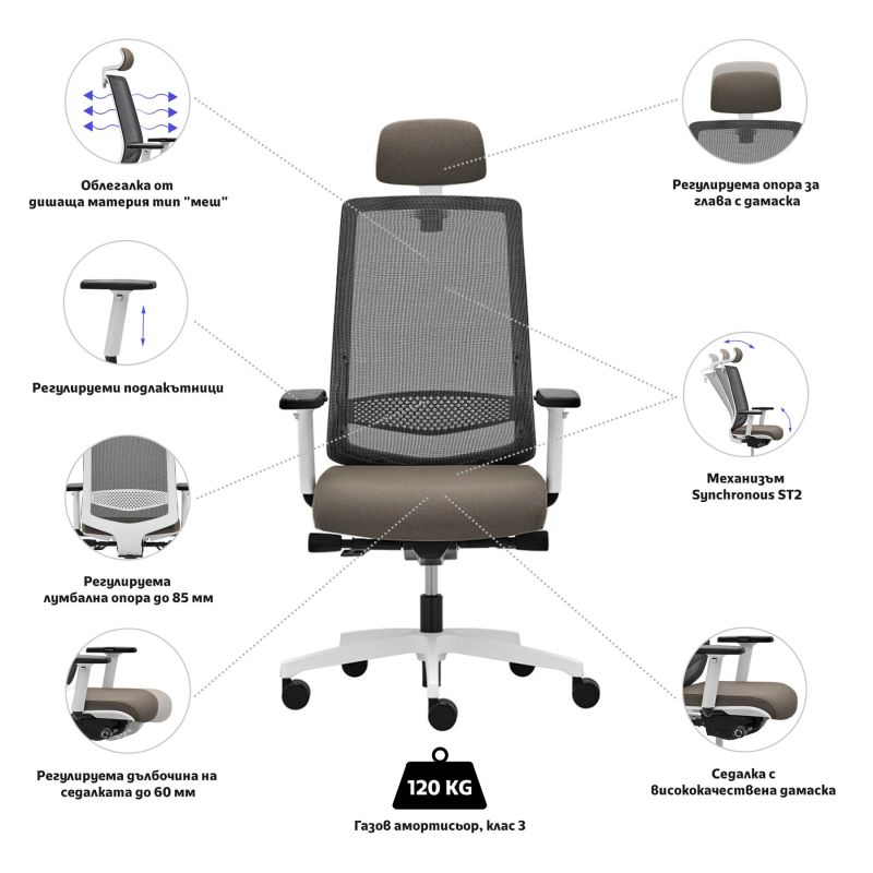 • Столът е оборудван с механизъм Synchronous ST2 за осигуряване на така нареченото динамично седене.