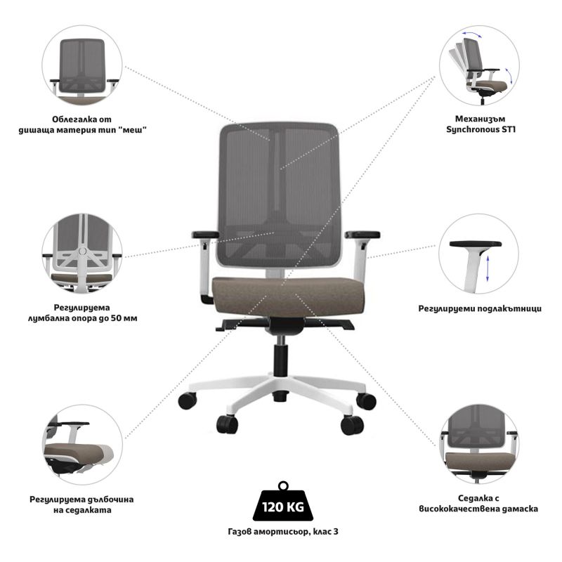 Ергономичен стол Rim Flexi FX 1104, до 120 kg, сив