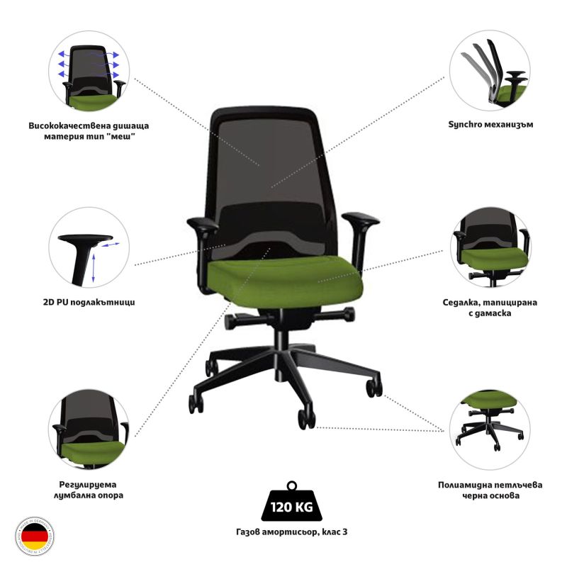 Ергономичен стол Interstuhl Every EV216, текстил, Synchronous механизъм, полиамидна основа, зелен