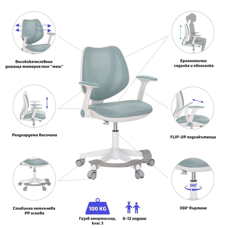 Детски стол RFG Sweety White, меш, до 100 kg, син