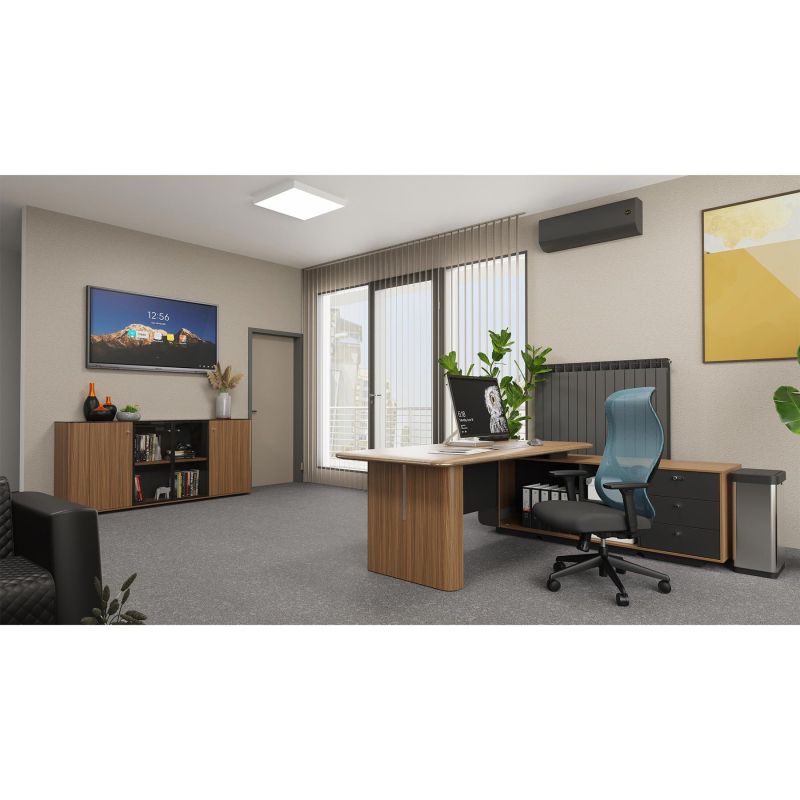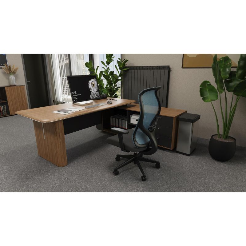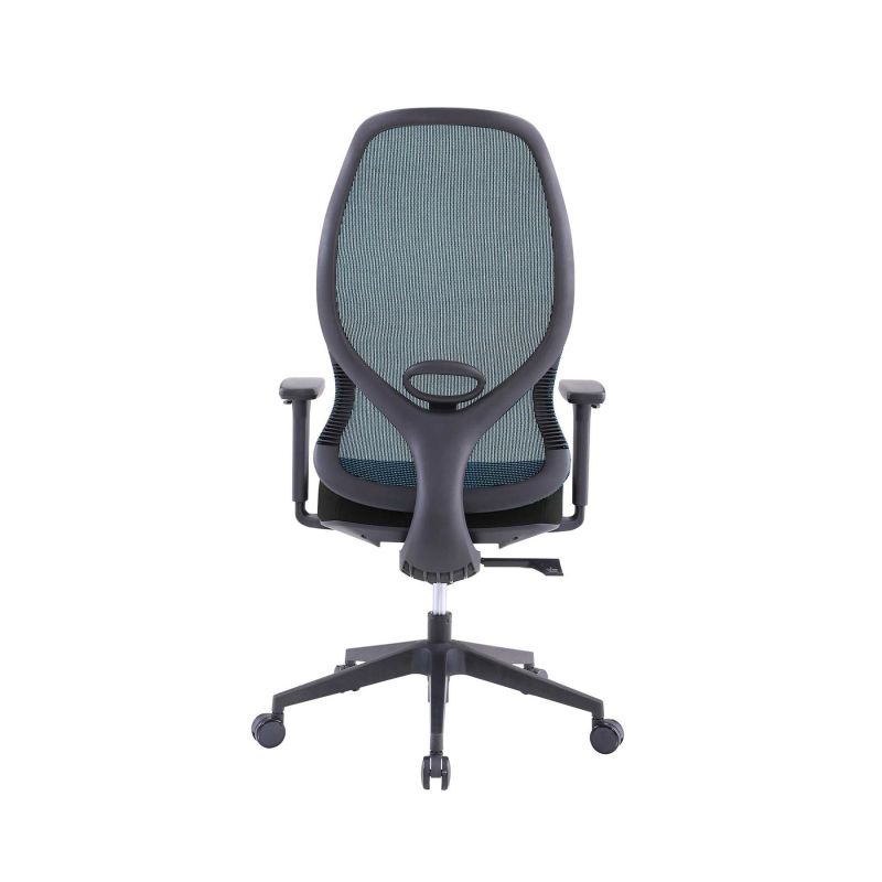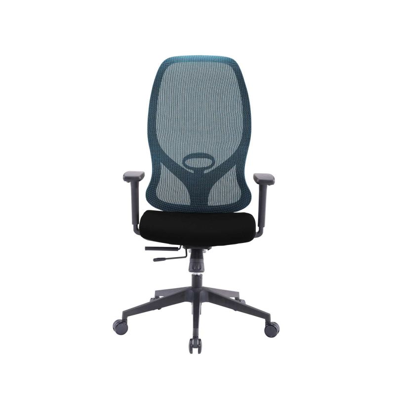 Ергономичен стол RFG STAR HB, дамаска и меш, Synchronous механизъм, до 150 kg, черна седалка, синя облегалка