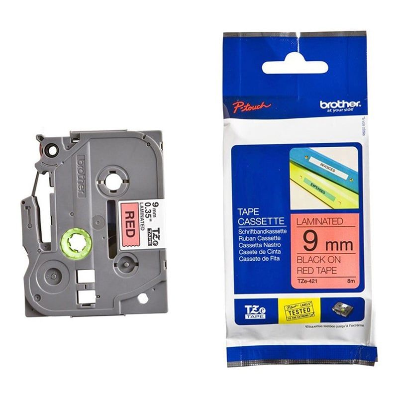 Лента Brother TZE421, 9 mm, черен печат върху червена лента