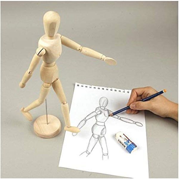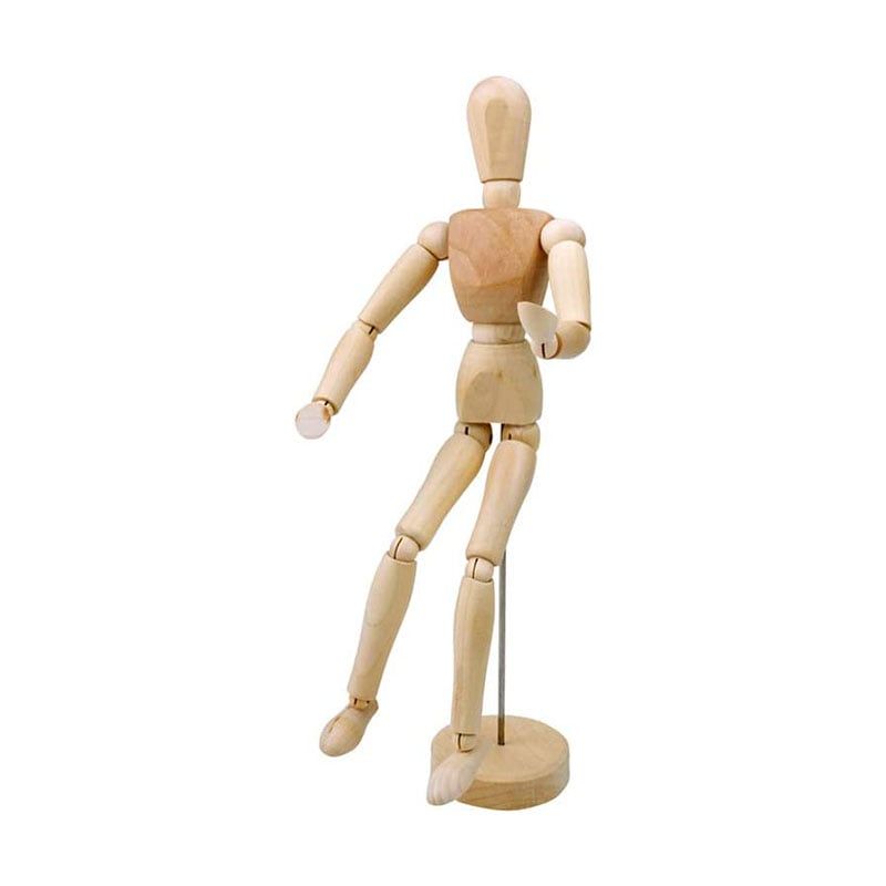 Куклата е направена от издръжлива дървесина и може да бъде поставена в почти всяка човешка позиция.
