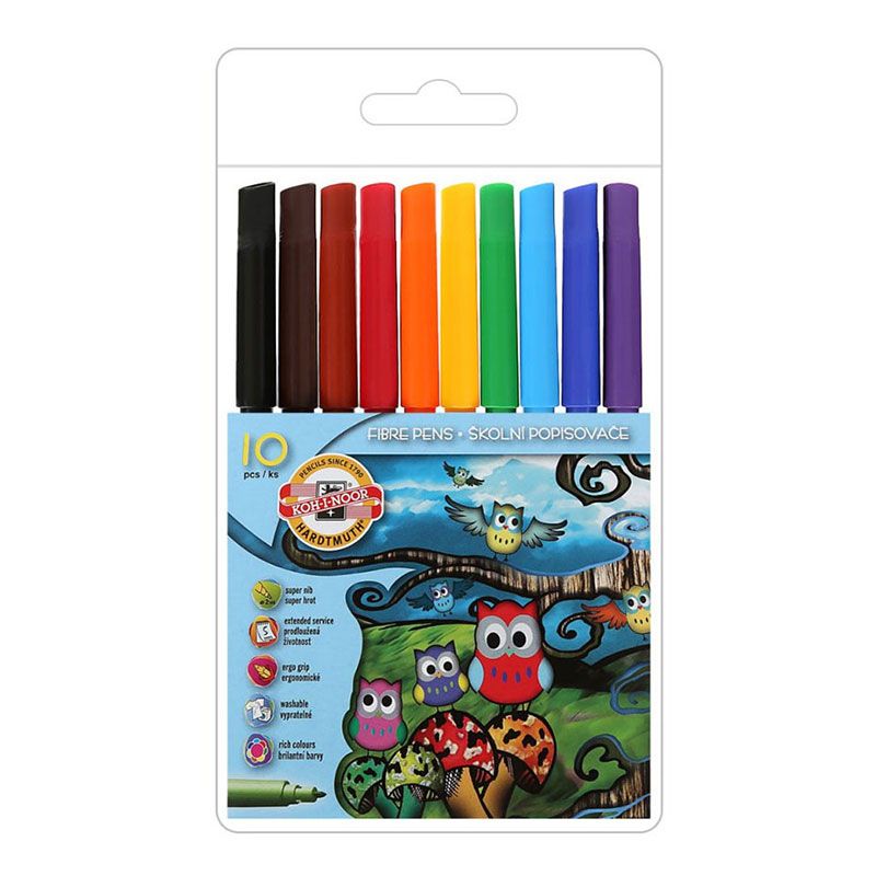 Флумастери KOH-I-NOOR Бухалчета 10 цвята