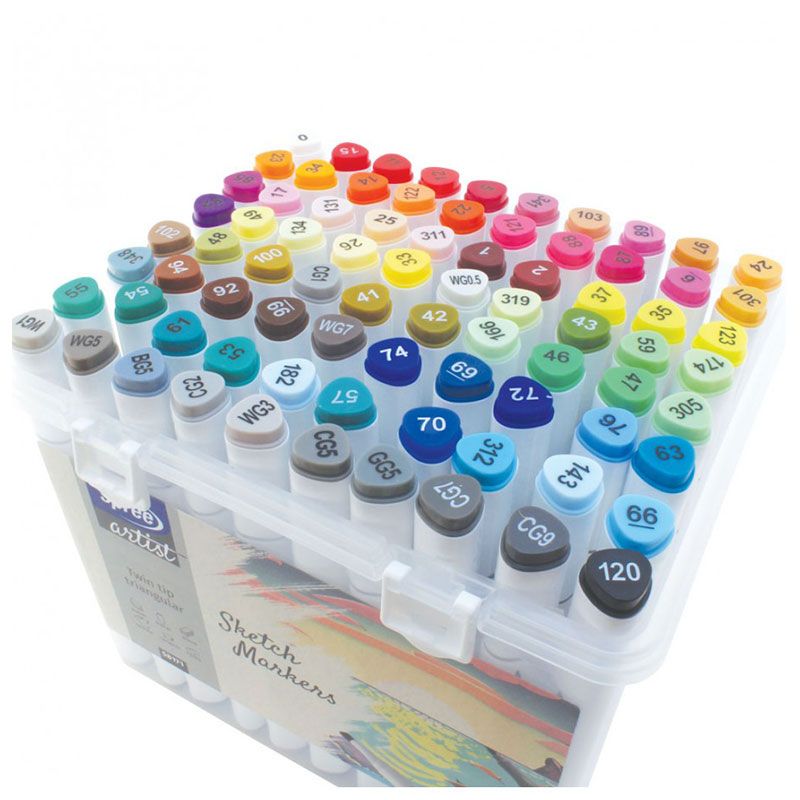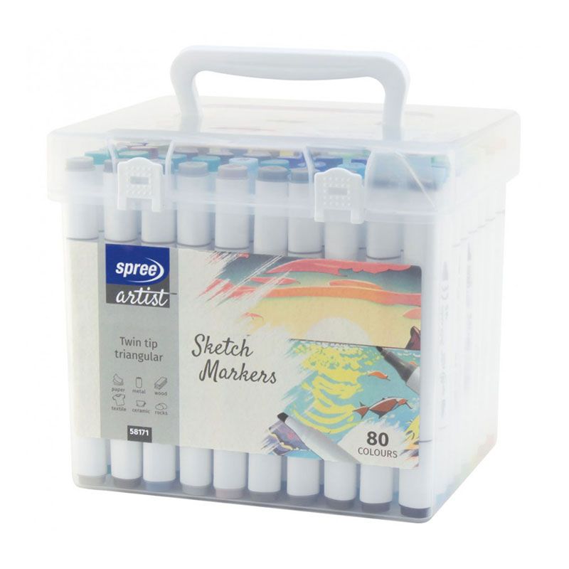 Маркери Spree акрилни двуцветни триъгълни, 80 цвята