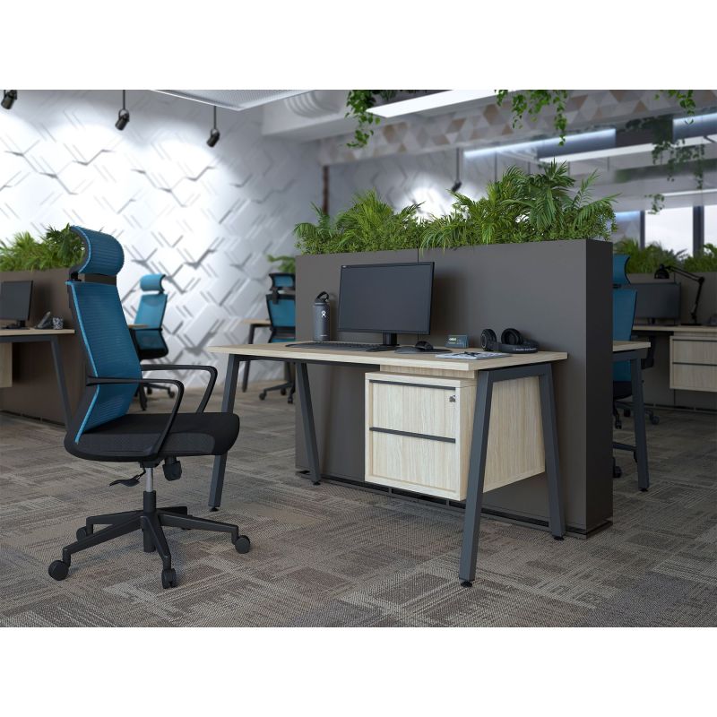Контейнер за бюро Narbutas Nova, окачен, 42.8 x 60 x 41 cm, ПДЧ, меламин кехлибарен дъб, тъмносиви дръжки