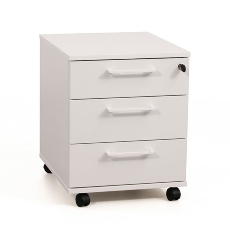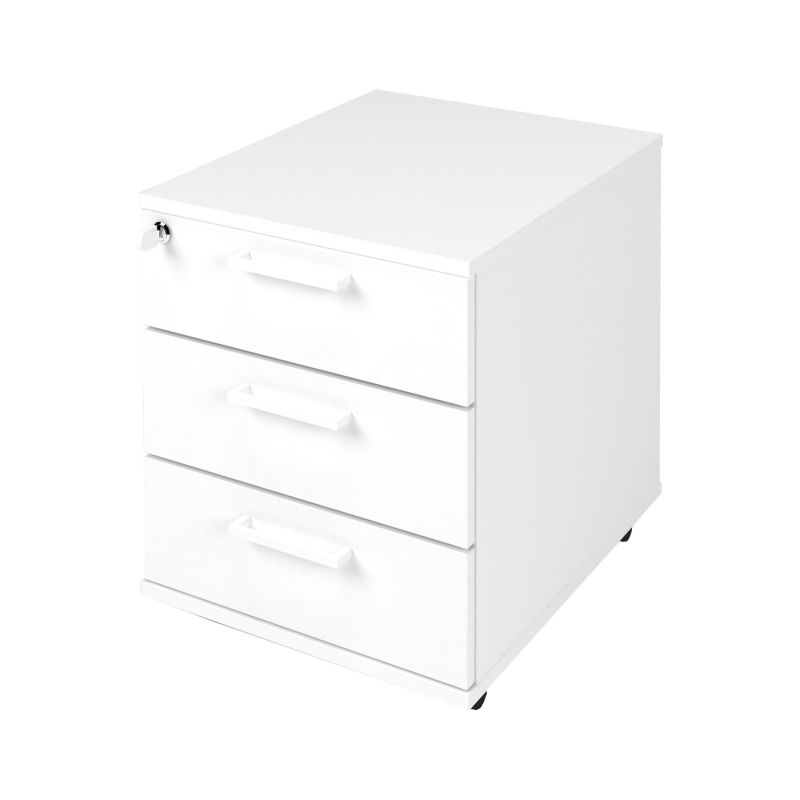 Контейнер за бюро Narbutas Optima, 415 x 500 x 510 mm, с колелца, ПДЧ, правоъгълна дръжка, бял