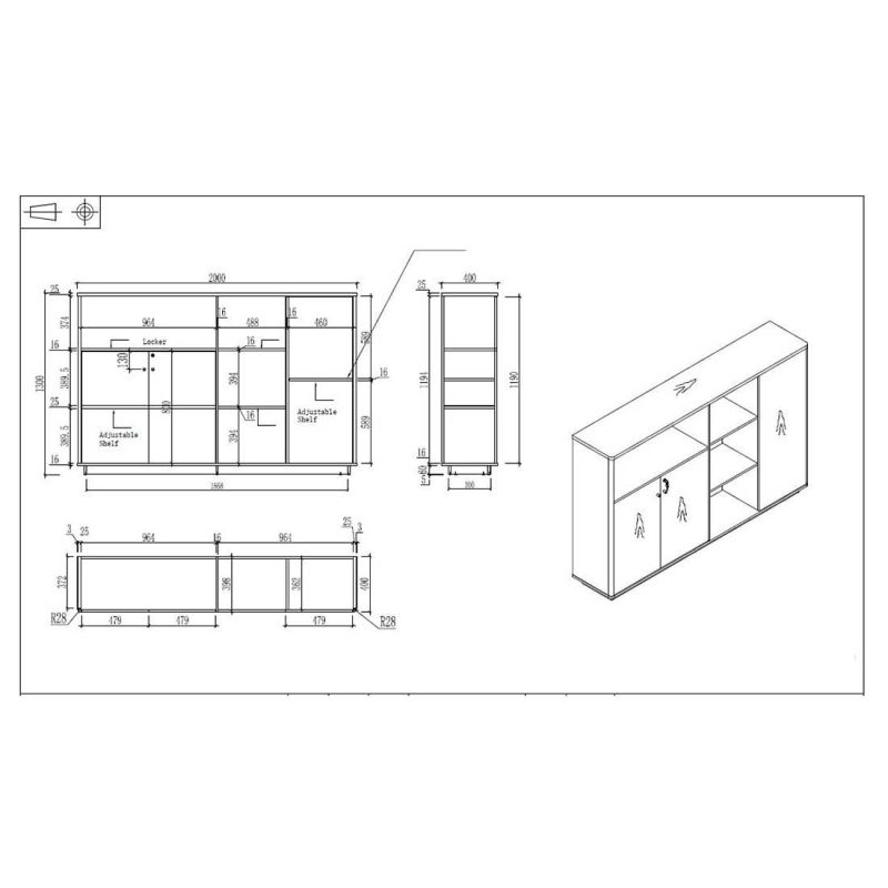 Шкаф RFG Paris, 2000 х 400 х 1300 mm, ПДЧ, орех и светлосиво