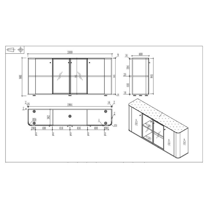 Шкаф RFG Parma, 2000 х 400 х 900 mm, ПДЧ, орех и перлен графит