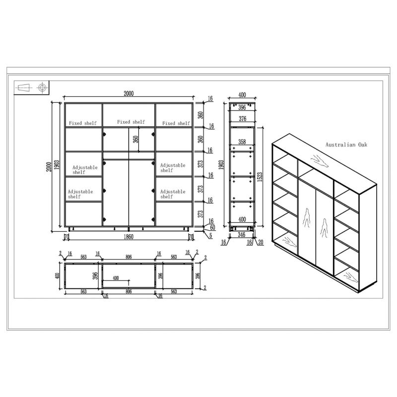 Шкаф RFG Elmaz, 2000 х 400 х 2000 mm, ПДЧ, австралийски дъб и сиво