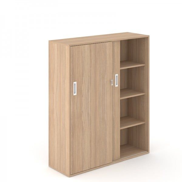 Шкаф Narbutas Choice, с плъзгащи се врати, 1600 x 400 x 1425 mm, ПДЧ 18 mm, меламин кехлибарен дъб, меламин кехлибарен дъб, бяла дръжка