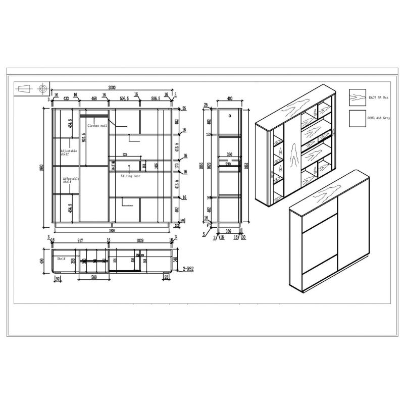 Шкаф RFG Lisabon, 2000 х 400 х 1980 mm, ПДЧ, тъмен дъб и сиво