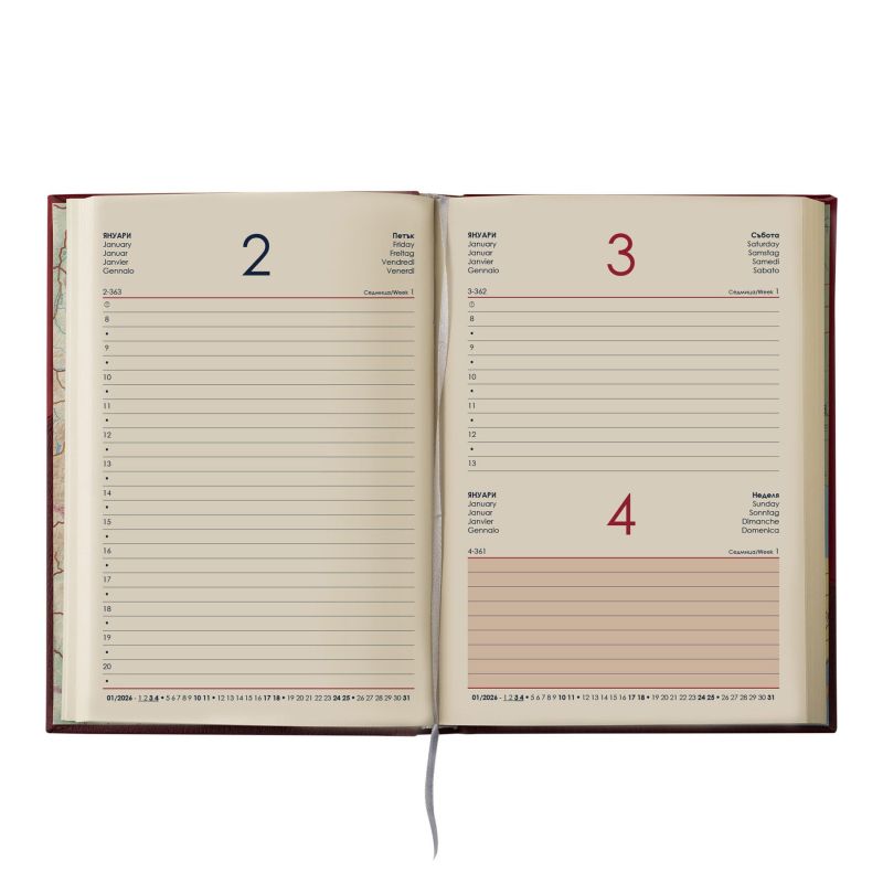 Календар-бележник Престиж, с дати, А5, червен/бордо