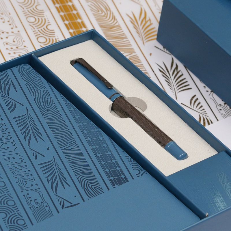 Office 1 Комплект тефтер и химикалка Floral Blue, в кутия, сини