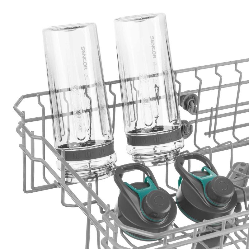 Идеален за приготвяне на смутита, шейкове, супи, сосове или бебешка храна. В комплекта са включени две спортни бутилки с вместимост 600 ml, изработени от здрав и безопасен тритан без BPA, което ги прави перфектни за носене в движение. Бутилките имат удобен отвор за пиене и сигурно затваряне, за да си спокоен, че няма да протекат в чантата ти.