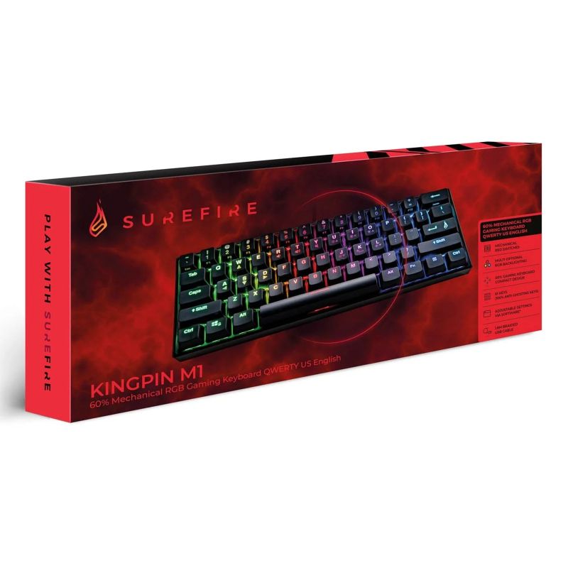 Клавиатура SureFire Kingpin M1, с кабел 1.8 m, геймърска, метална, USB Type-A, 61 бутона