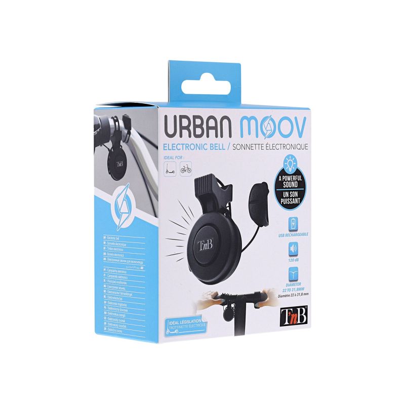 TNB Звънец за велосипед, електронен, 22 - 31.8 mm, черен