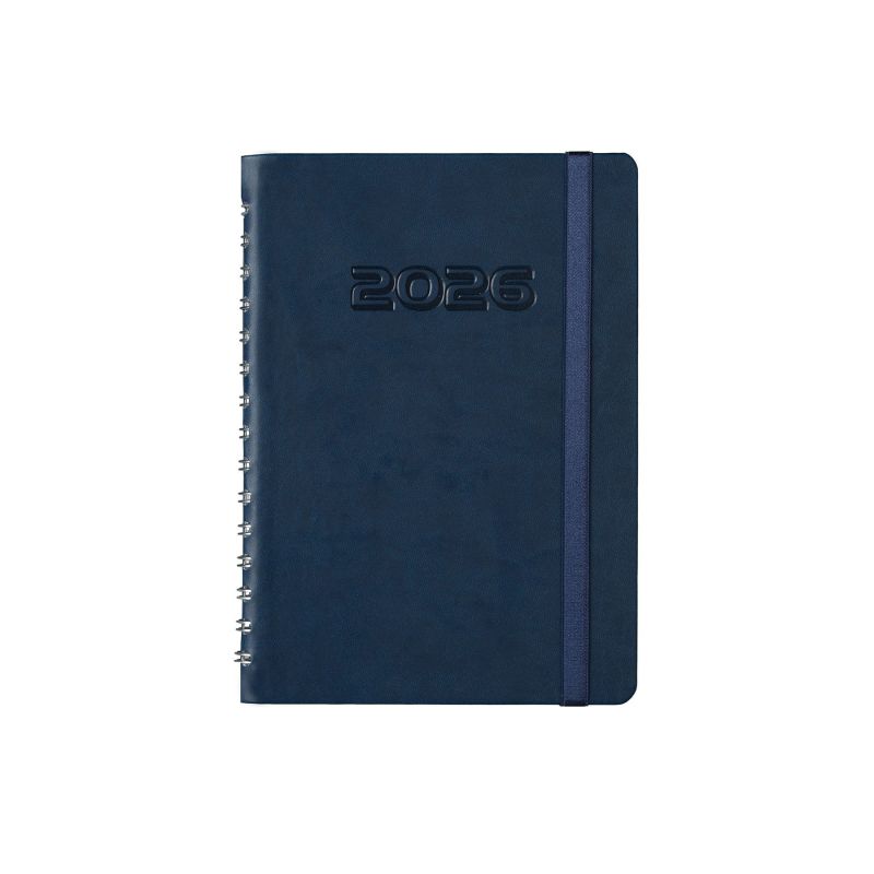 Календар-бележник, А5, с дати, със спирала и ластик, луксозен, син