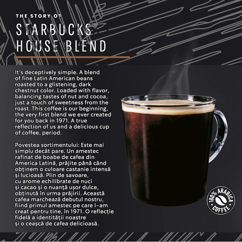 Комбинация от отлично подбрани кафе зърна от Латинска Америка, изпечени до блестящ, тъмнокестеняв цвят. Наситени с аромат и балансирани нотки на ядки и какао, както и съвсем лека нотка сладост, придадена благодарение на изпичането. Това кафе е нашето начало, първата комбинация кафе зърна, която създадохме за Вас през 1971 г. Истинско отражение на самите нас и на чаша възхитително кафе.