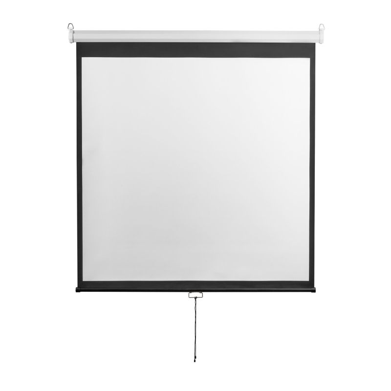 Самозаключващ се екран за прожектиране с екранна площ 96'' в съотношение 1:1. Подходящ за учебни цели, презентации и кинопрожекции.