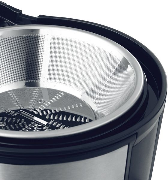 - Микросито от неръждаема стомана за оптимално извличане на сок. Изцеждайте сок без усилия и загуби от есенцията на плода! Благодарение на висококачественото микросито от неръждаема стомана се радвате на повече течност, извлечена от плодовете. Можете да извлечете много сок от вашите плодове и зеленчуци, при това за нула време!
