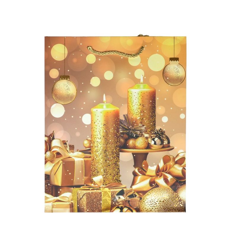 Подаръчна торбичка Свещи, коледна, 26 х 32 х 10 cm, златиста