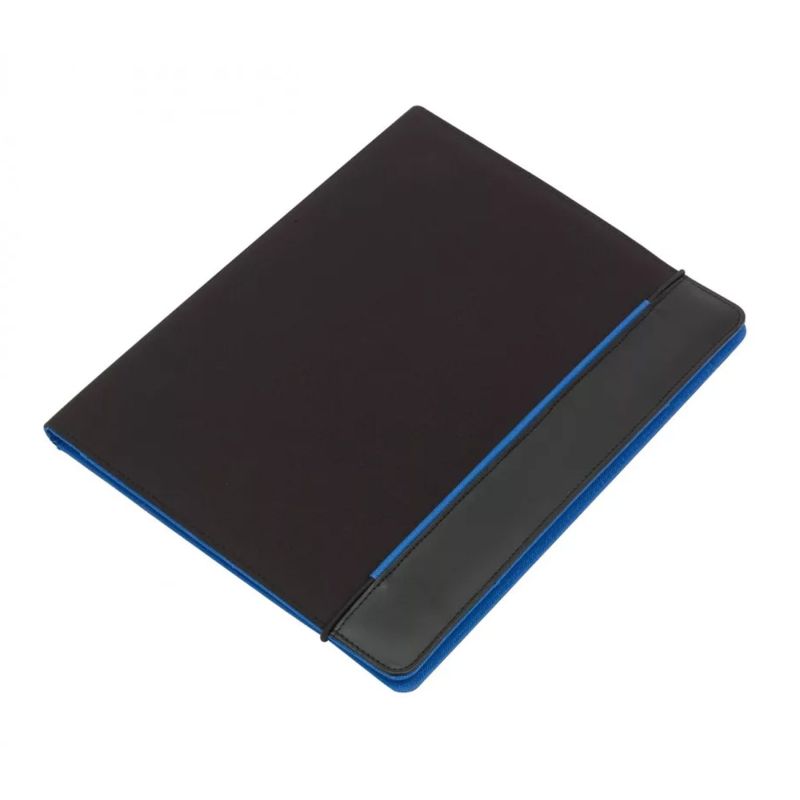 Проектиран е с подложка за писане, джобове и еластична лента за сигурно затваряне.