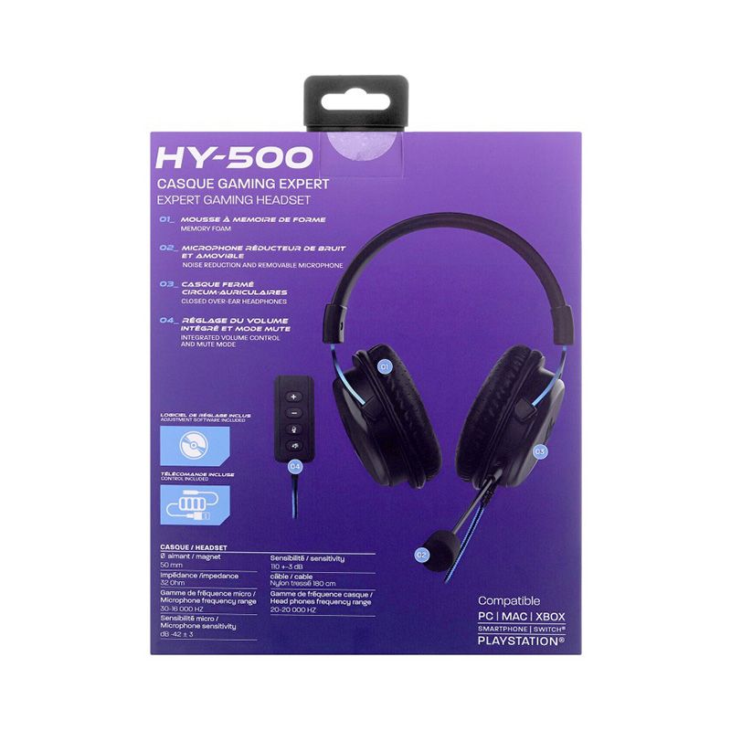 HY-500 PRO е слушалката, която ще отговори на нуждите на геймърите, търсещи отлична производителност и комфорт. Регулируемите подложки от изкуствена кожа, с опция за запаметяване на формата, са изключително меки и се адаптират перфектно към формата на главата ви за траен комфорт дори и при най-интензивните игрални сесии. Насладете се на висококачествения звук, независимо дали сте на конзола, компютър или смартфон. Слушалките разполагат с USB адаптер, който ще ви позволи да превключите на 7.1 съраунд звук за истинско потапяне в играта. Снабден с дистанционно управление, адаптерът ви позволява да регулирате силата на звука, да заглушите звука или микрофона си. Използвайте микрофона и се насладете на перфектна комуникация с вашите съотборници. Предоставеният софтуер ще ви позволи да персонализирате звука според вашите предпочитания. Може да видите декларацията за съответствие тук. Може да видите инструкциите тук.