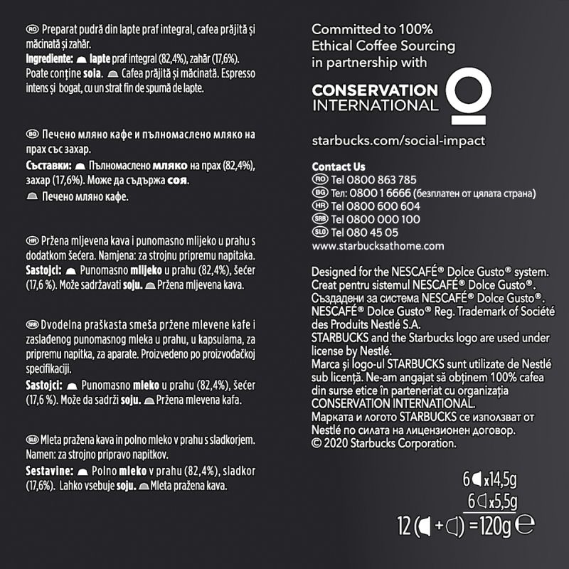 Nescafé Dolce Gusto Кафе капсула Starbucks, Cappuccino, 12 броя