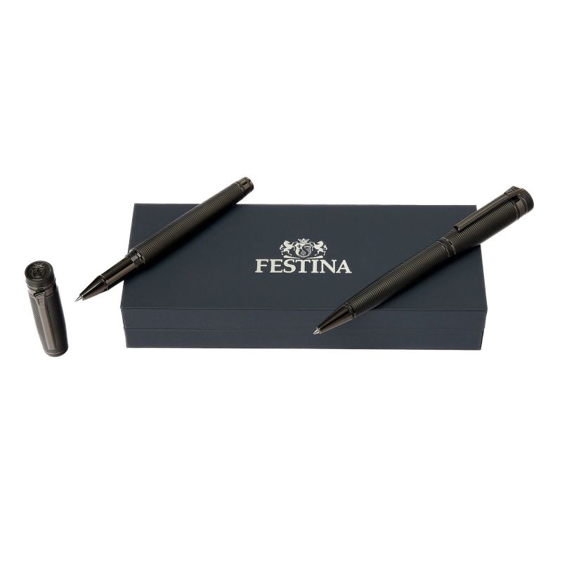 Festina Комплект ролер и химикалка Bold Stripe, в кутия, черни