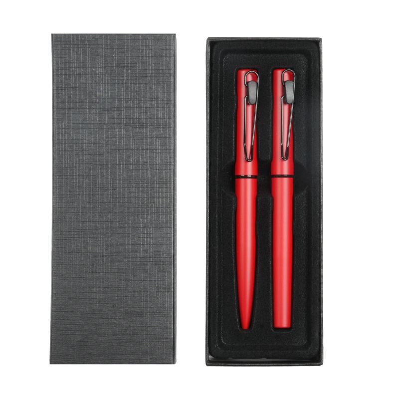 Office 1 Комплект химикалка и ролер Caligo, метални, червени
