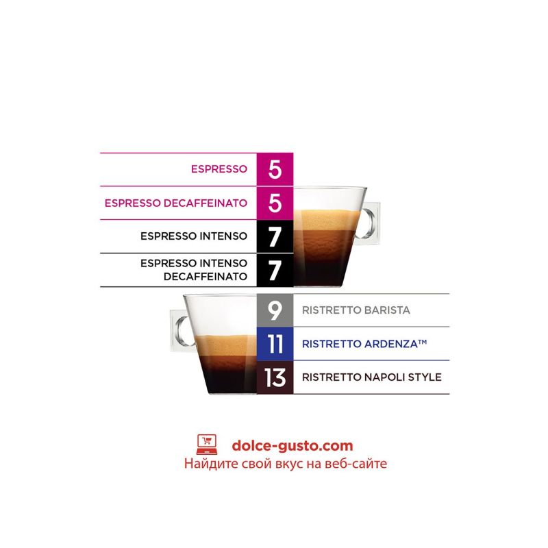 Открий NESCAFE® Dolce Gusto Ristretto Barista - късо кафе, ристрето (35 ml), с плътно тяло, гъст каймак и долавящи се нотки на какао, амарето, щипка черен касис и боровинка.