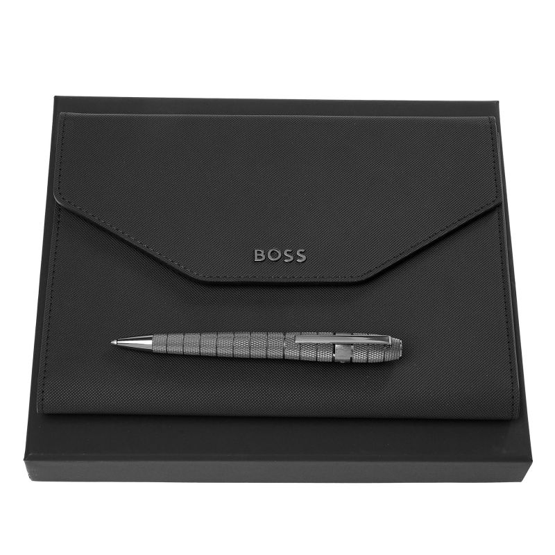 Hugo Boss Комплект химикалка Quantum и папка Rive, A5, хром