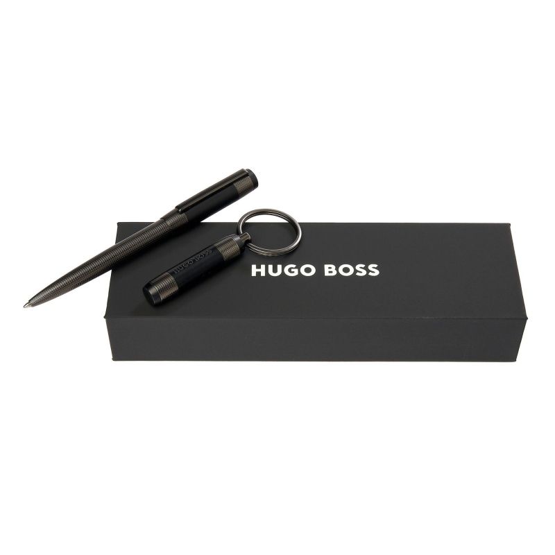 Hugo Boss Комплект ключодържател и химикалка Rive, хром