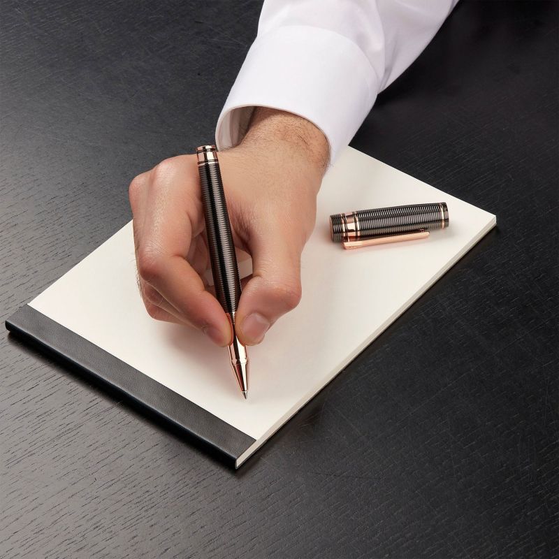 Ролерът е гравиран с хоризонтални ивици с луксозно метално покритие и изискани детайли.