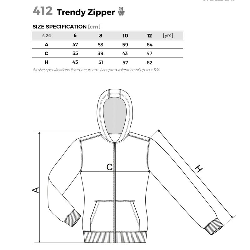 Malfini Детски суитшърт Zipper 412, поларен, размер 122 cm, възраст 6 години, черен